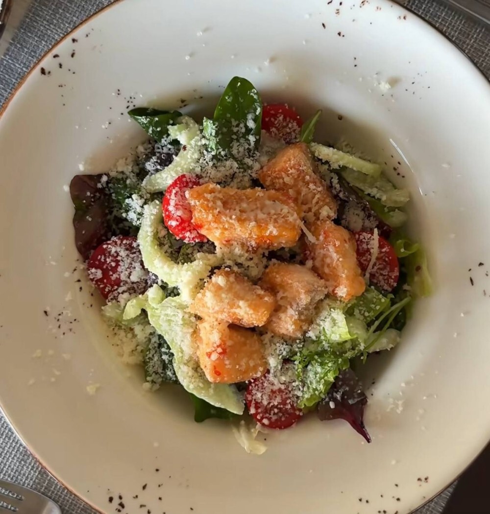Салат с обжареной семгой