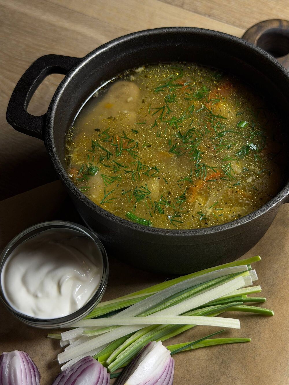 Насыщенный суп, который согреет и порадует вас своим богатым вкусом, — настоящая находка для любителей грибных блюд. Нежные белые грибы, ароматная перловка, овощи и свежая зелень в сочетании с кремовой сметаной создают неповторимую гармонию вкусов. Попробуйте этот аппетитный суп и ощутите тепло и уют в каждой ложке
