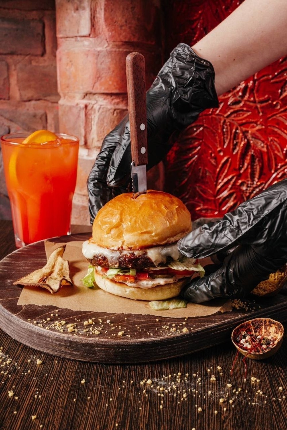Нежная оленина, маринованные огурцы, пикантный луковый мармелад — интересное сочетание вкусов, которое идеально дополняет горчично-майонезная заправка и брусничный соус. А свежая булочка бриош с листьями салата делает блюдо ещё и невероятно аппетитным