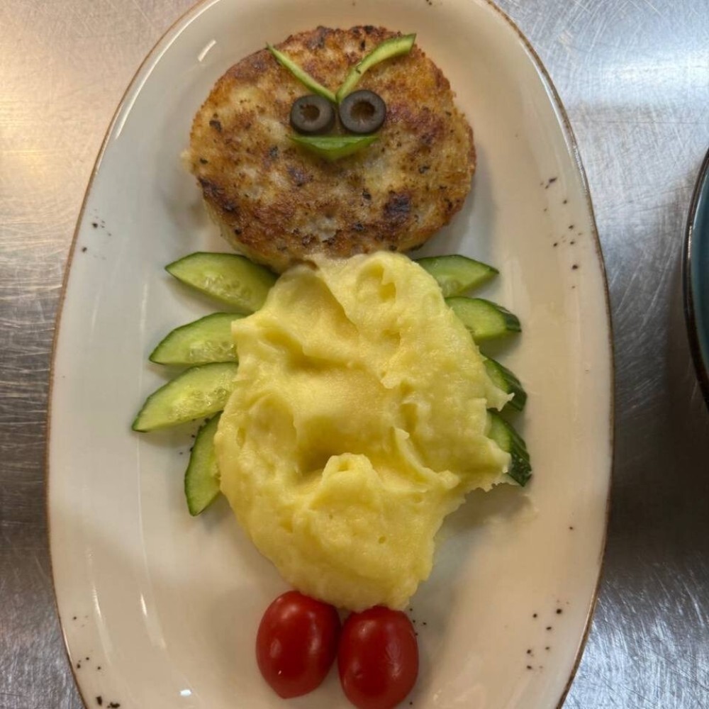 Совушка Сова - это сытное и полезное блюдо из куриной котлетки в панировке с картофельным пюре, свежими черри и огурцом. Отлично подойдёт в качестве обеда или ужина для юных гурманов.